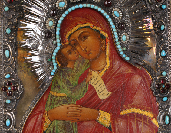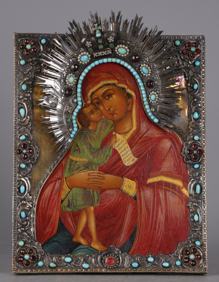 Дерево, темпера, золочение, серебро 84 пробы, литье, чеканка, бирюза, изумруды, гранат, алмазы, жемчуг