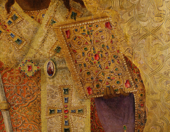 Дерево, темпера, золочение, чеканка