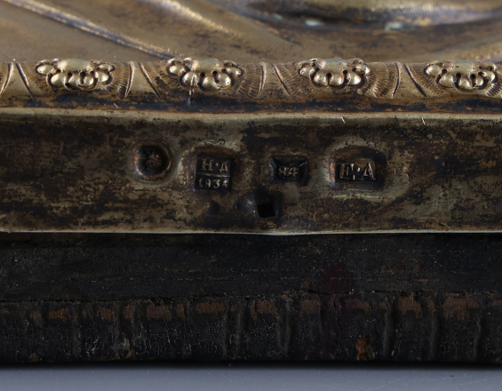 Дерево, масло, серебро 84 пробы, чеканка, золочение