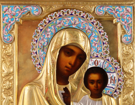 Икона Богородица Казанская в серебряном окладе 00206-25