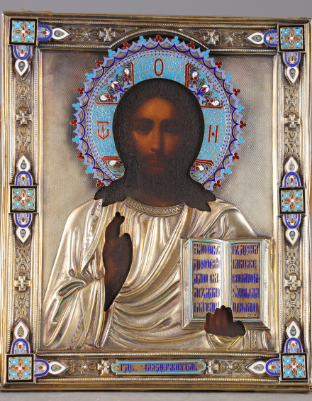 Икона Господь Вседержитель в серебряном окладе 00207-25