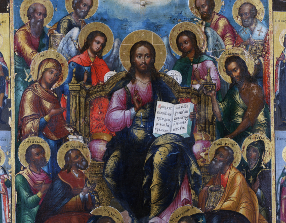 - Икона Господь Вседержитель на троне с палеосными святыми