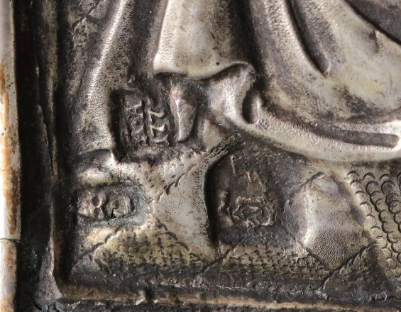 Дерево, серебро 84 пробы, чеканка,